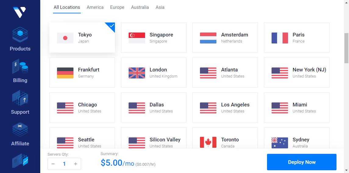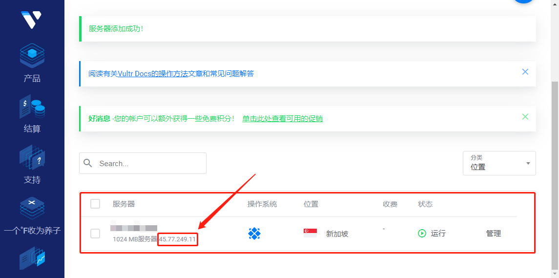 因为现在vultr基本上快被玩坏了,所以这里我连着创建了三台VPS,前面两台VPS的IP都是被墙的