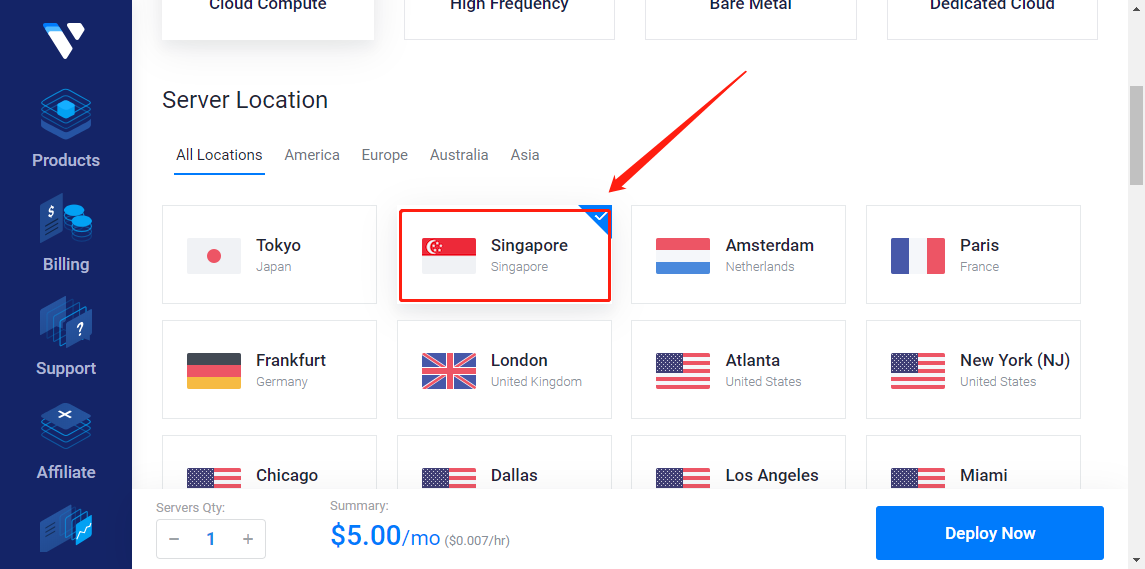 所以这里我们选择【新加坡】的服务器,然后继续往下翻