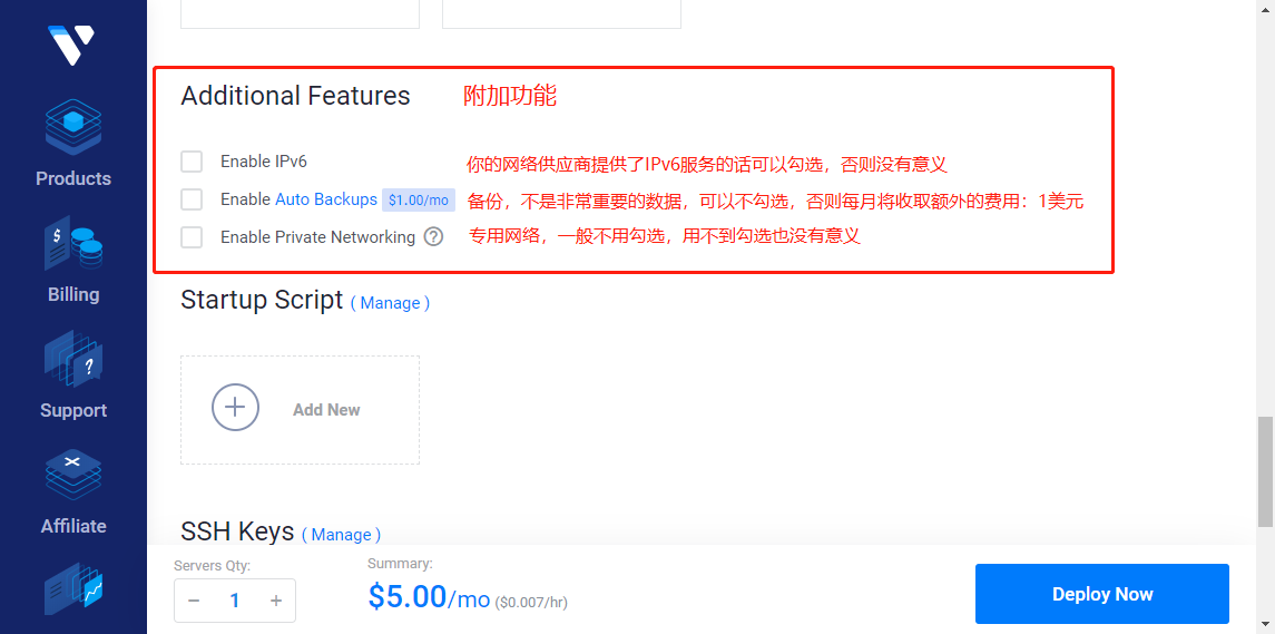 启用自动备份:只要不是重要的数据,建议不勾选,否者将会收取额外的费用:1美元每月