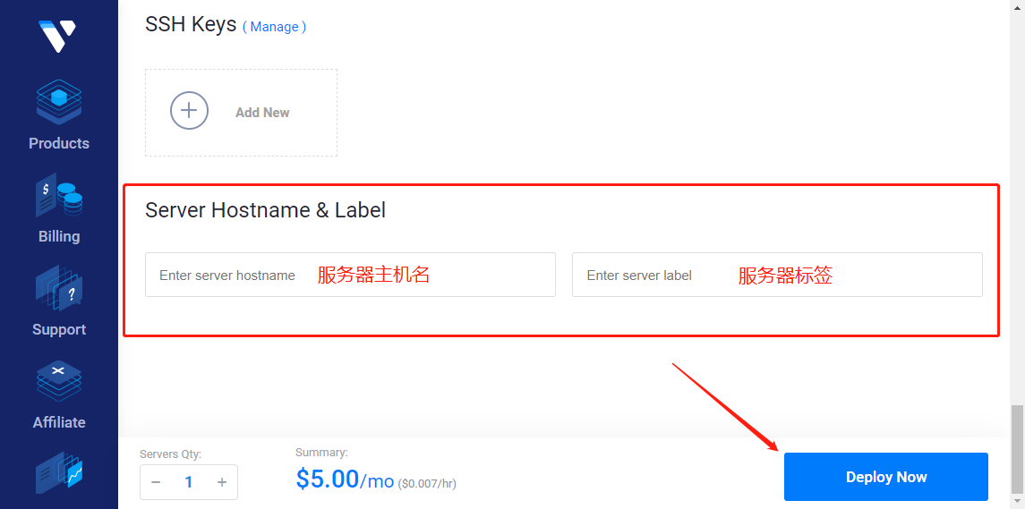 服务器名&服务器标签:这个主要是为了方便识别管理,当你有了多台VPS实例以后,可以通过服务器主机名和服务器标签从而识别,方便你管理,可以随便设置,字符最好设置为英文字母或是阿拉伯数字