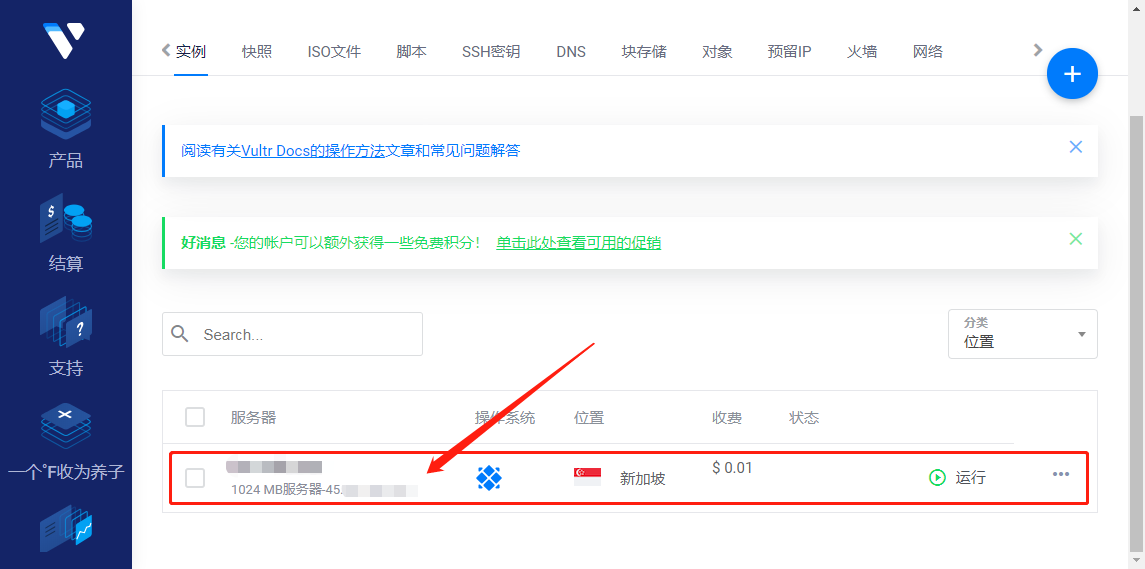 如果检测确认IP是被墙的,那么先不要销毁当前的实例,继续接着创建新的实例,因为vultr的IP分配机制是顺序分配,如果你是先销毁IP被墙的实例,后面很有可能还会别分配到同一个IP,所以遇到被墙的IP地址,先别急着销毁实例