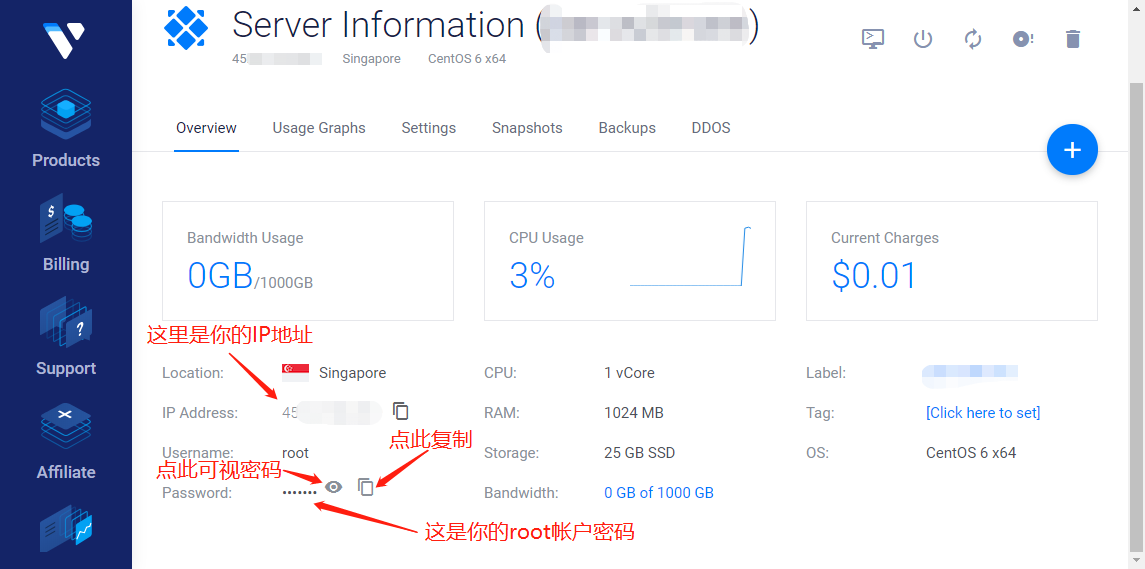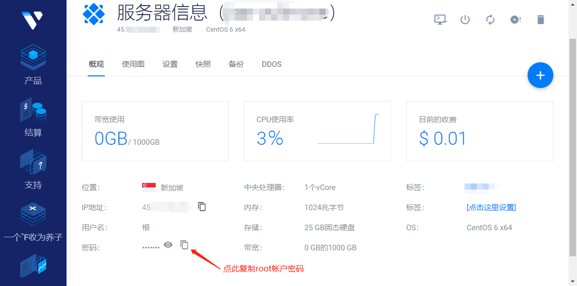 当VPS创建完成以后,首先要检查一下分配给你的IP地址是否被墙,如果是被墙的IP那么在大陆地区是无法使用的
