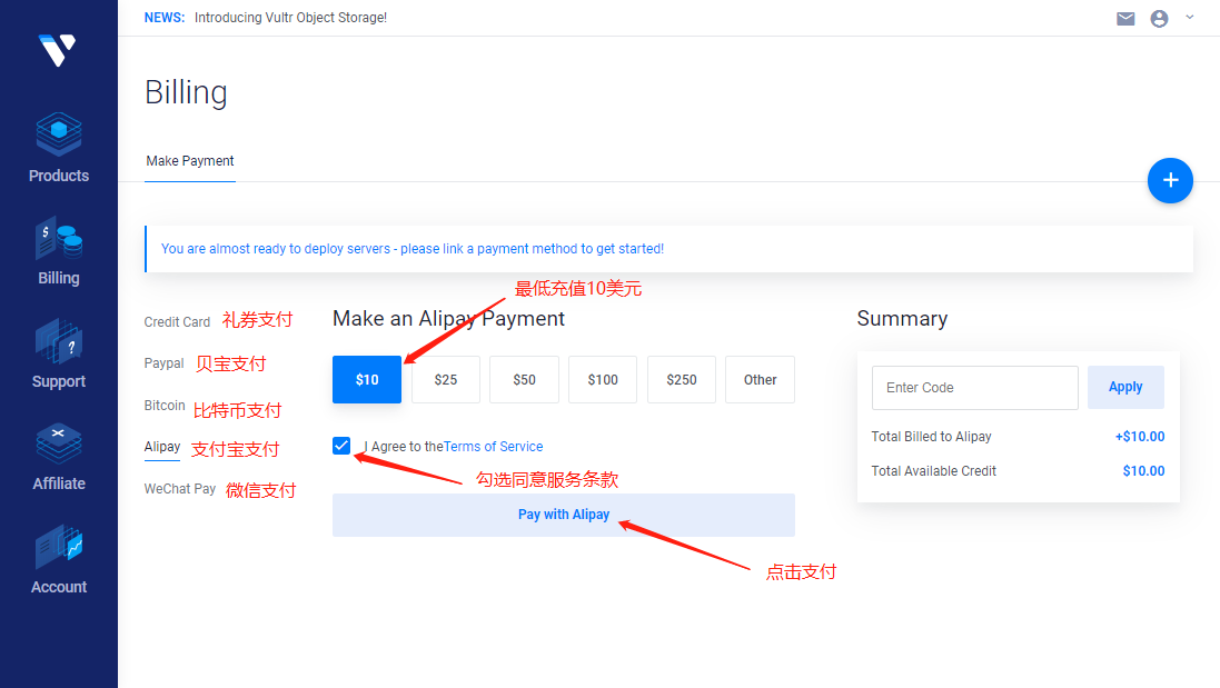 届时完成注册充值,然后就可以购买VPS,创建实例了